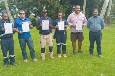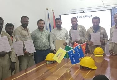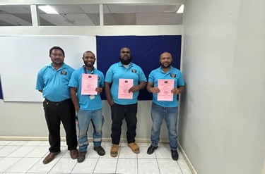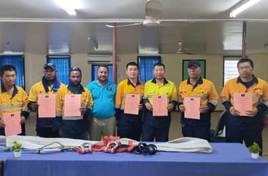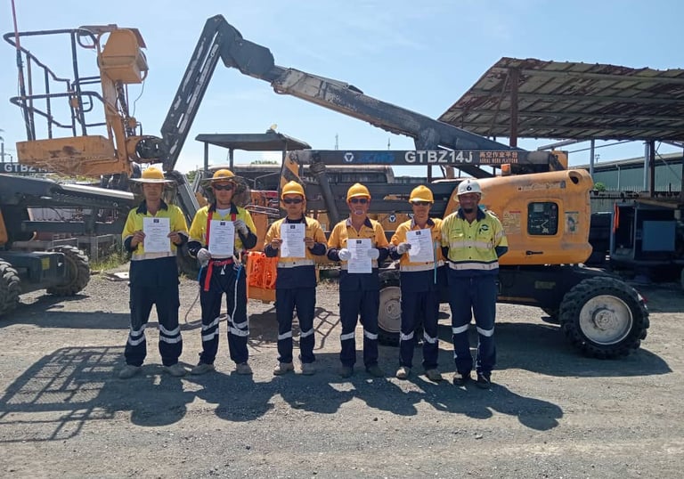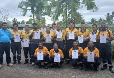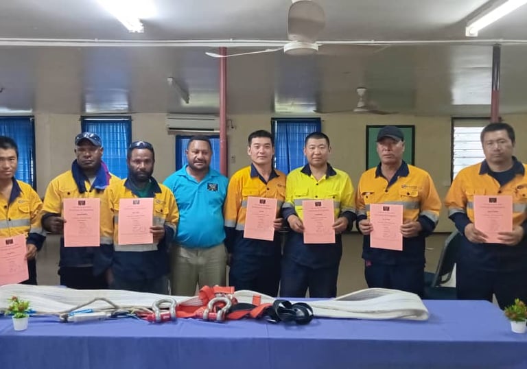 Construction Companies in Lae, CHEC, HBS and RT engineering with Work Safety at Height and Basic Rigger training certificates.