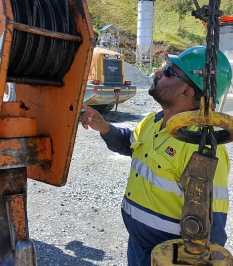 Trainees Inspecting Rigging Gear, Voltran Construction, Lae.
