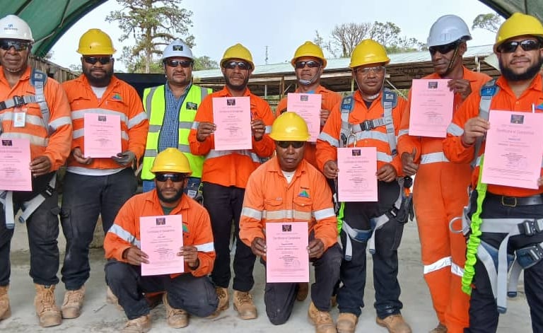 Participants receiving Work at Heights Certificates. Laba Holdings, Papa Lealea, Central Province